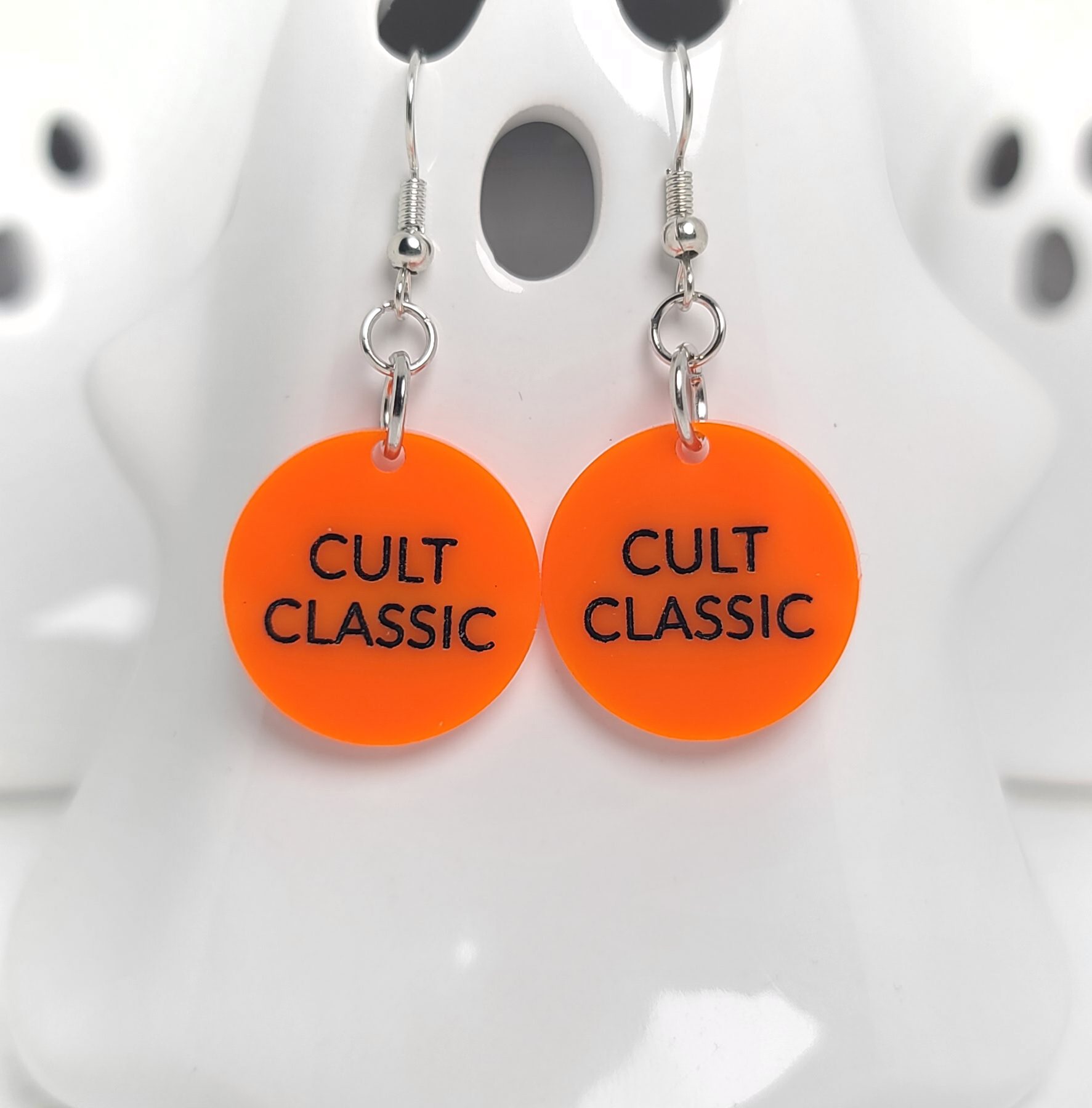 Ever go to the rental store looking for the craziest movie you could find? Chances are, that movie was a CULT CLASSIC! Now, you can be the cult classic with these retro-styled earrings inspired by the days of mom-and-pop rental stores and Blockbuster Video. A fun way to show off your love of the wilder side of cinema. Designed and handcrafted in Illinois. Shipping & handling included for orders within the United States. International orders, please query before purchase.
